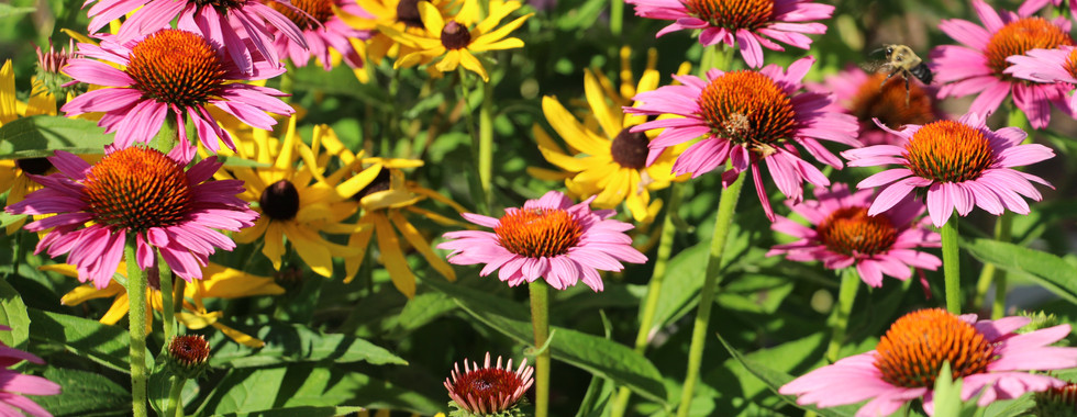 A summertime visit to a residential project in Concord revealed a vibrant meadow of summer blooms including Actaea racemosa, Monarda (Bee Balm), Asclepias (Milkweed), Echinacea (Coneflower), and Rudbeckia (Black-eyed Susan) and some very happy pollinators!
